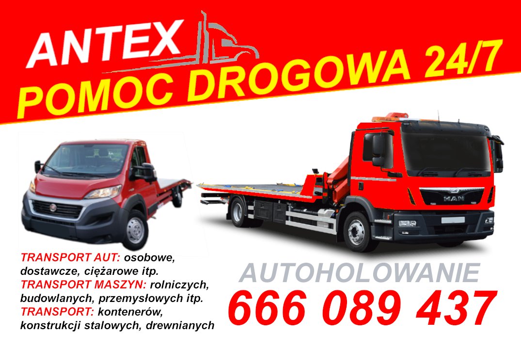 Pomoc drogowa Mińsk Mazowiecki ANTEX laweta transport- maszyn holowanie S17 A2 S2 DK50